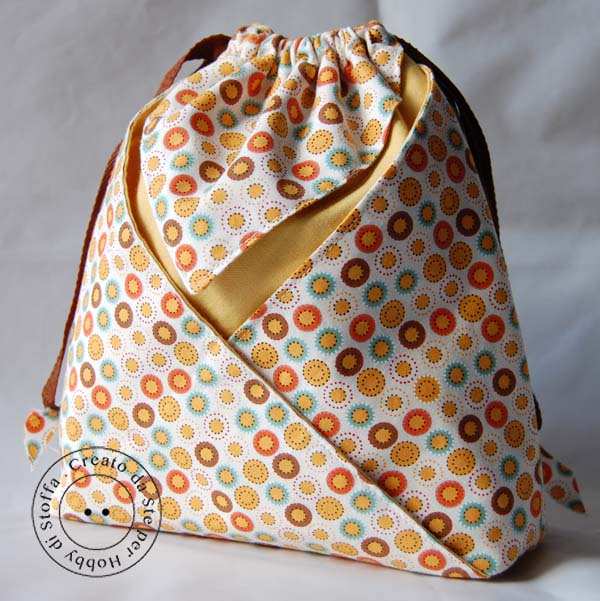 Come vedete alla fine si ottiene un sacchetto chiuso da un nastrino che alla base ha una profondità di circa 5 cm.